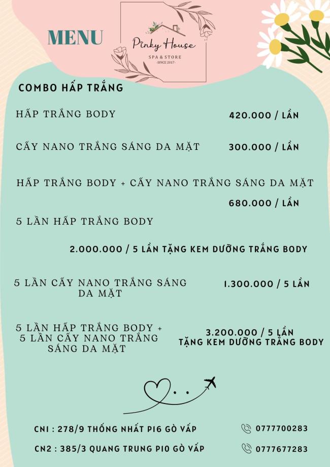 Pinky House chuyên Gội đầu - Hấp trắng face & body, Trị mụn - Lăn Kim - Vi Tảo , Massage Body - Face - mỹ phẩm chính hãng chất lượng và dịch vụ uy tín